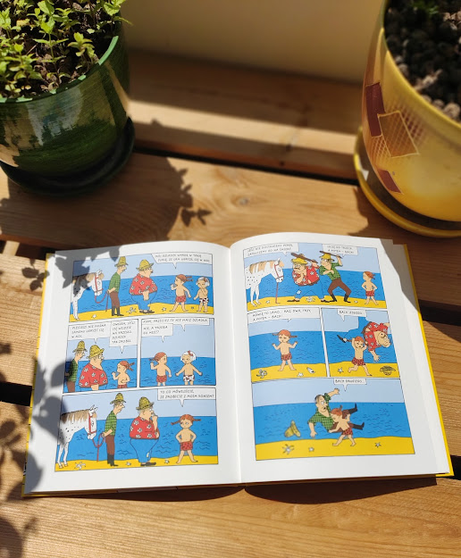 Pod koniec maja prezentowałam Wam jedną z nowości wydawnictwa Zakamarki, Pippi w Parku. Kilka dni później otrzymałam od wydawnictwa miłą niespodziankę. Do naszych rąk trafił komiksy z przygodami Pippi zebrane w książce pod tytułem „Pippi nie chce być duża i inne komiksy”.